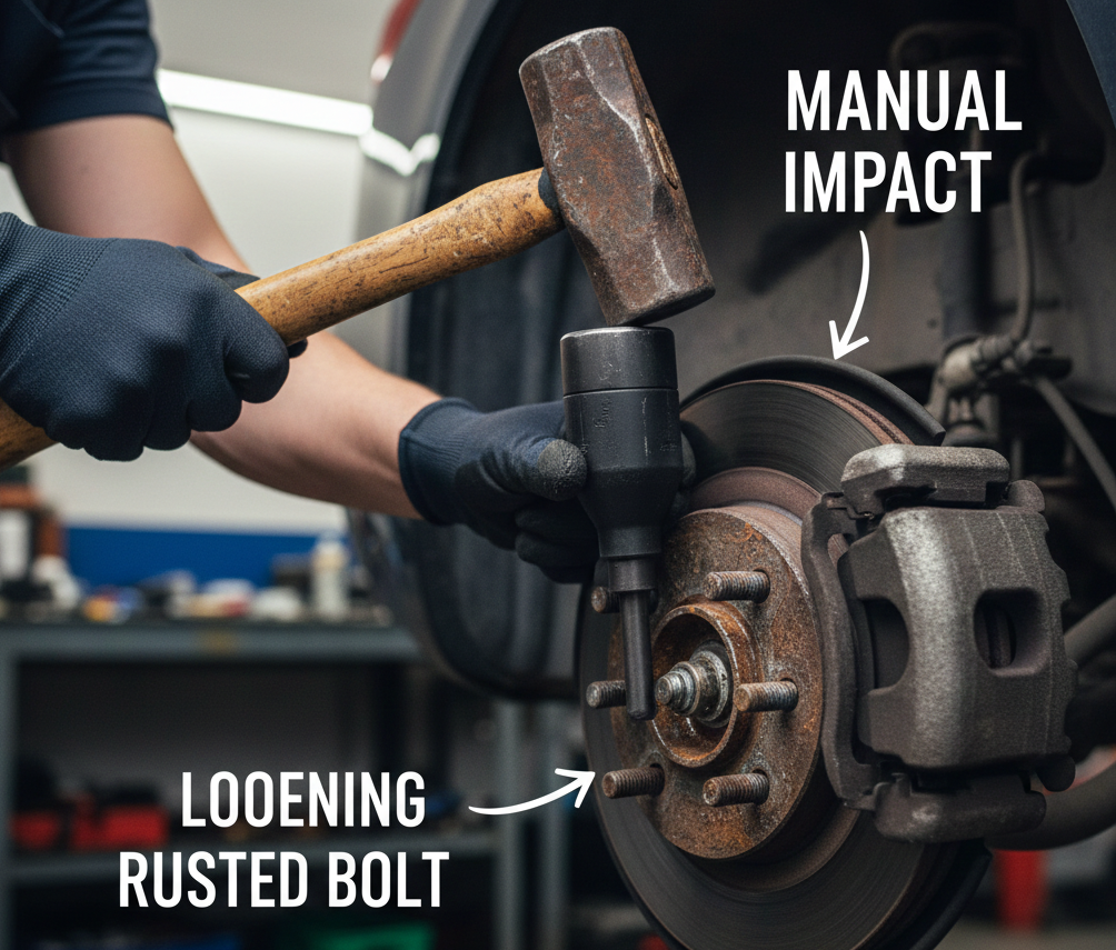 Na druhém konci funkčního spektra sedí ruční rázový utahovák , často nazývaný a ruční rázový utahovák . Toto zařízení slouží jako čistě mechanický protějšek k vysoce výkonným systémům, vyhýbá se vzduchovým vedením a elektřině ve prospěch designu, který se při fungování zcela spoléhá na fyzický úder kladiva. Mechanici jej široce považují za mistrovské dílo jednoduché, ale brilantní techniky, speciálně vytvořené pro řešení problémů s vysokým třením – jako jsou zadřené šrouby nebo zkorodované spojovací prvky – kde přesnost a velká síla směrem dolů jsou cennější než hrubá rychlost.
